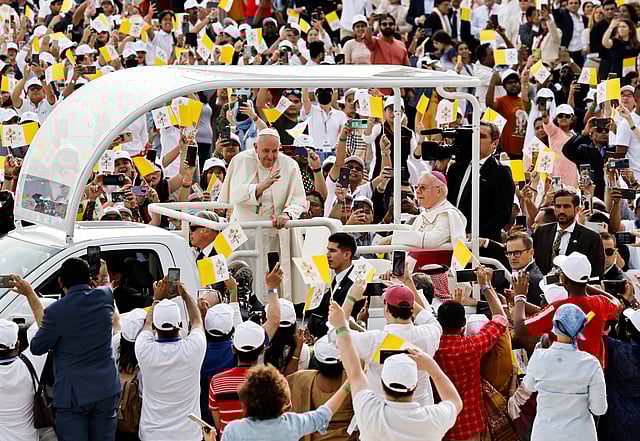 AWALI, Bahrain (Reuters) -Pope Francis said Mass for thousands of Catholics in Bahrain on Saturday, thrilling members of the small foreign Catholic community from around the Gulf and urging them to show kindness to their hosts.