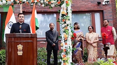 Ambassador Raveesh Kumar started the Independence Day festivities by unfurling the national flag at the Embassy premises in Helsinki.