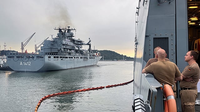 "Safe and secure sea lanes, especially from Southeast Asia as well as to Europe and America, are a prerequisite for a prosperous economy of all our countries," Rear Admiral Axel Schulz said in a speech to a reception held on the flight deck of the frigate FGS Baden-Württemberg during a port visit in the South Korean city of Incheon.
