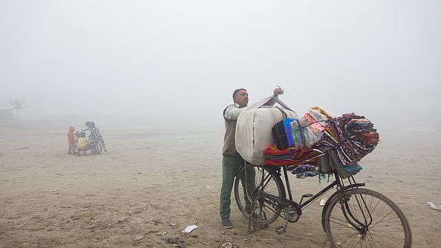 Local media showed images of vehicles crawling along highways through the fog, and people huddled indoors as the temperature dipped to 7 degrees Celsius (44.6 degrees Fahrenheit).