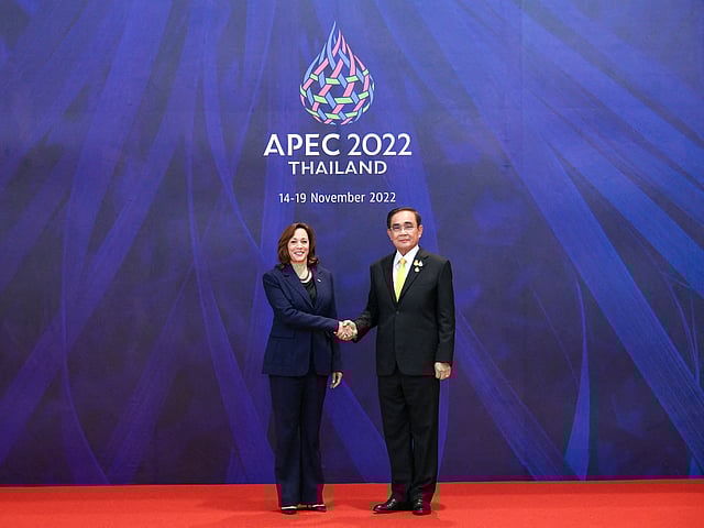 "I'm happy to hand over the chairmanship to U.S. We are ready to conduct a seamless cooperation with them," he said, handing to Harris a "chalom", a woven bamboo basket used to carry goods and gifts in Thailand.